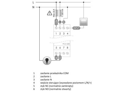 - Znamionowy prąd przełączania 250 V AC 16 A